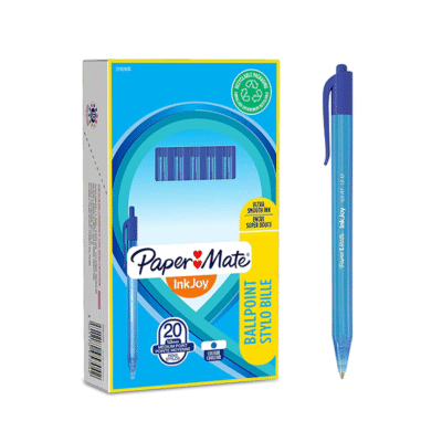 Paper Mate – InkJoy 100 – Penna a Sfera a Scatto, Punta Media da 1.0 mm – Confezione da 20 – Blu