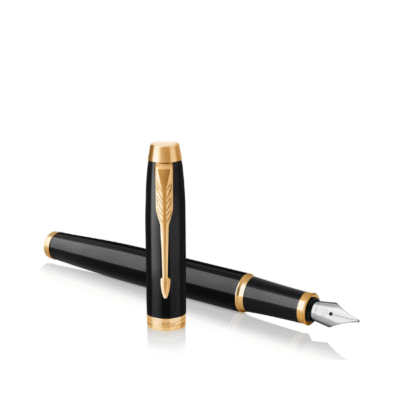Parker 1931645 – IM Penna Stilografica, Punta Sottile e Ricarica di Inchiostro Blu, Confezione Regalo, Black Lacquer Golden Trim