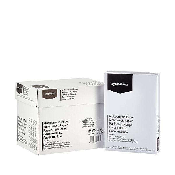 Amazon Basics – Carta da stampa multiuso A4 80gsm – 2500 unità, 5 confezioni da 500 – Bianco