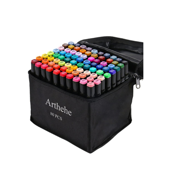 ARTHEHE – Pennarelli Marker artistici – Dual Tips Pennarello indelebile – Adulti e Bambini – 80 colori